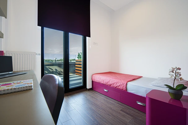 - Özel İki Kişilik Oda: İki öğrenci için ortak bir oda, mutfak ve banyo bulunmaktadır.